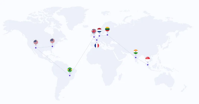 We offer server locations in the USA, the United Kingdom, France, India, Singapore, Brazil, Lithuania, and the Netherlands.